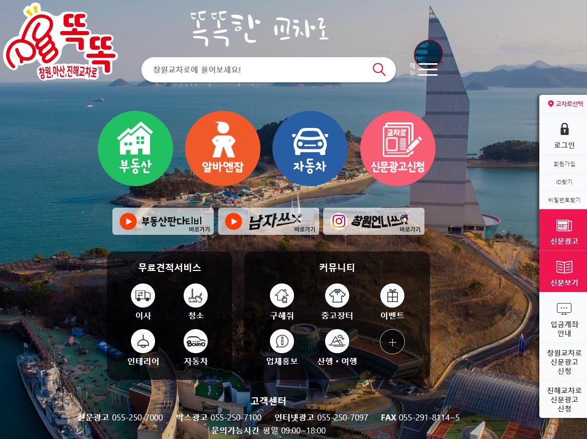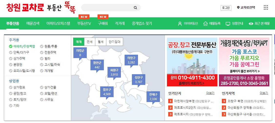 여기까지 접속을 해보셨다면 여기에서 부동산 버튼을 눌러보시면 창원교차로부동산 매물 정보를 보실수가 있어요. 그리고 우측에 신문보기를 눌러주셔도 바로 종이신문으로도 보실수가 있으실겁니다.